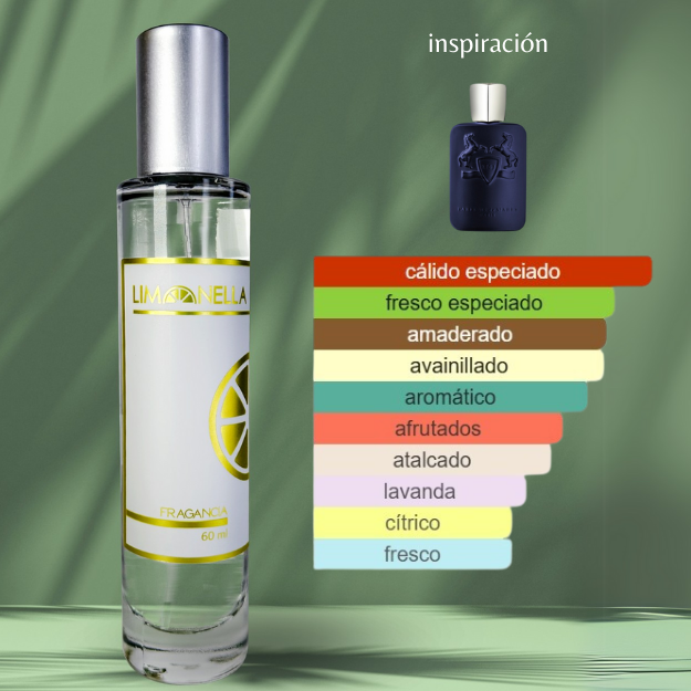 Las notas de salida son manzana, lavanda, bergamota y mandarina; las notas de corazón son geranio, violeta y jazmín; las notas de fondo son vainilla, cardamomo, sándalo, pimienta, madera de gaiac y pachulí.