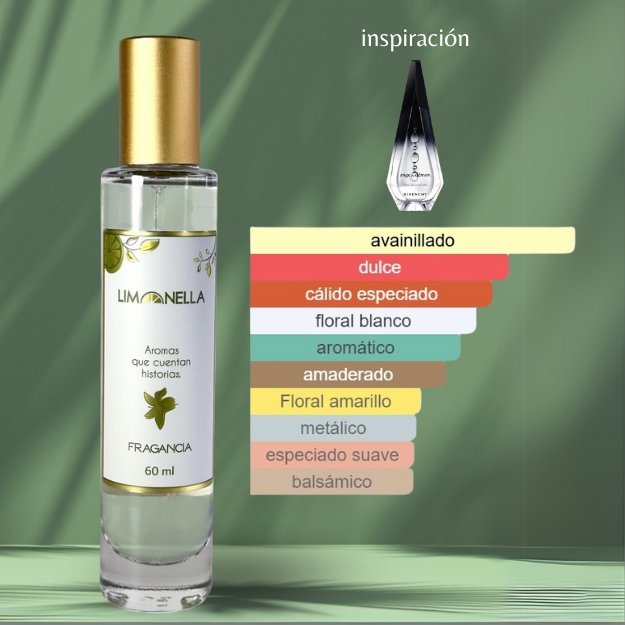 Las Notas de Salida son azafrán, tomillo y mandarina; las Notas de Corazón son azucena, ylang-ylang y orquídea; las Notas de Fondo son vainilla, haba tonka, palo de rosa de Brasil y musgo de roble.