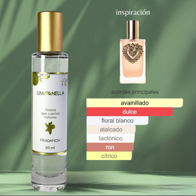 La nota de salida es Candied Lemon; las notas de corazón son panacota, flor de azahar del naranjo y ron; la nota de fondo es vainilla.