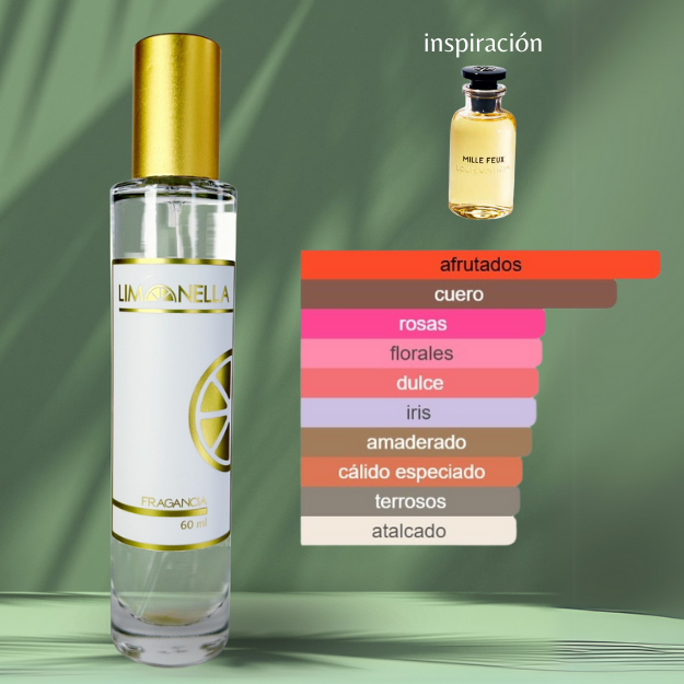Las notas de salida son frambuesa y bergamota; las notas de corazón son rosa, azafrán, osmanto (olivo oloroso), iris y jazmín; las notas de fondo son cuero, raíz de lirio, sándalo, musgo y pachulí.