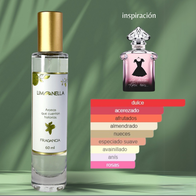 La Petite Robe Noire de Guerlain es una fragancia femenina dulce, sofisticada y con un toque coqueto. Combina notas de cereza negra, almendra y frutos rojos con un corazón floral de rosa y té negro, y un fondo seductor de haba tonka, vainilla y regaliz. Es ideal para usar de noche y en otoño o invierno, gracias a su calidez y profundidad. Perfecta para citas, cenas o eventos especiales, transmite feminidad con un estilo parisino chic, elegante y encantador.
