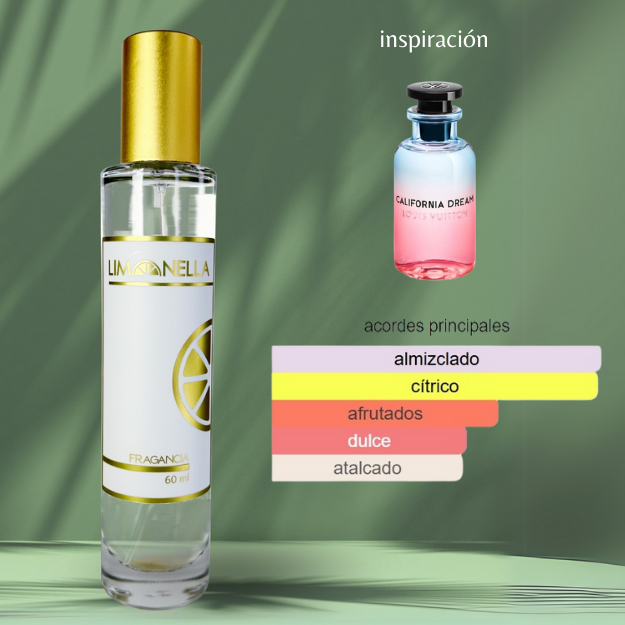 Perfume con notas almizcle, pera, mandarina, almizcle Ambreta, benjuí